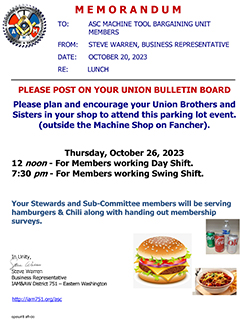Your subcommittee team has a BBQ lunch planned for this Thursday, October 26, 2023. This will be held during your lunch time at 12 noon for day shift and 7:30 pm for swing shift. We will be handing out Surveys and Contract Negotiation Process books. Please plan and encourage everyone to attend.