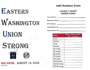 T-shirts were distributed this week. If you did not get a chance to fill out one reform, please ask your Union steward, subcommittee member or call Leslie at the Union Hall. (509) 534-9690