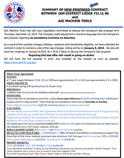 ASC Machine Tools met with your negotiation committee to discuss the Company's last proposal form Thursday, December 19, 2023. The Company made adjustment in overtime language form the Company’s last proposal regarding no mandatory overtime on Saturday.